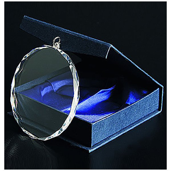 FM 70 Medalla de cristal con un alto índice de refracción. Perfecto para grabado láser. Presentación en estuche azul con interior de paño de seda y protección de aislapol. Incluye estuche de presentación azul con interior de paño de seda y protección de aislapol. Modelo DIMENSIONES PACKING CÓDIGO FM…