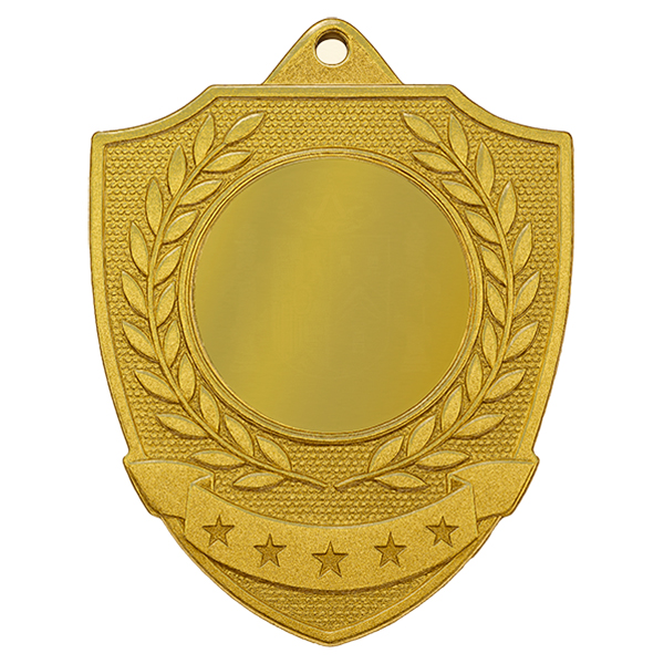 MD25 Medalla para reconocimiento con diseño hoja de laurel. Dimensiones 50mm x 63 mm x 2mm Packing 25 Und. Insert Diá. 25 mm Opciones de Personalización