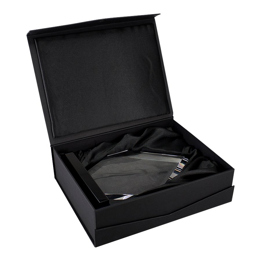 Deluxe Trofeo grande de Cristal modelo "Black Diamond" con base negra. Presentación en caja de cartón forrado negro.