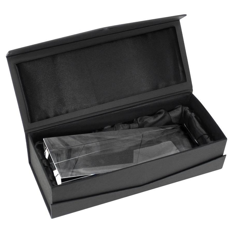 Trofeo grande de Cristal modelo "Tower". Presentación en caja de cartón forrado negro.