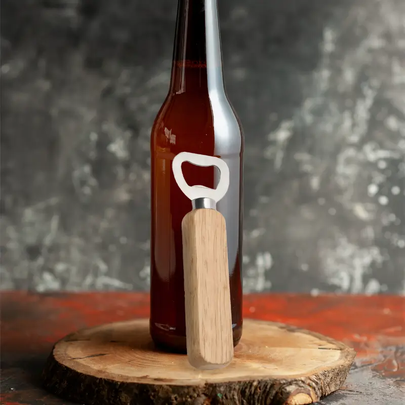 Destapador de botellas fabricado en acero con mango de madera de caucho, combina un diseño clásico con materiales resistentes y duraderos.