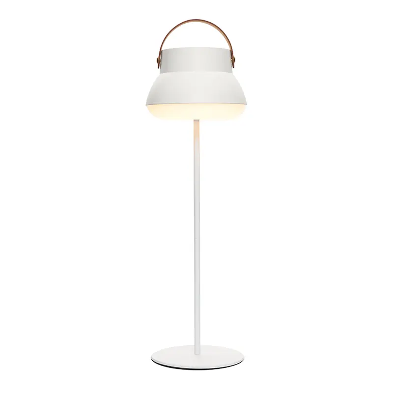 La Lámpara recargable, cuenta con un cómodo agarre superior que facilita su transporte, y también con un sistema retráctil que permite usarla como lámpara de mesa regulable en altura y colgarla en cualquier espacio.