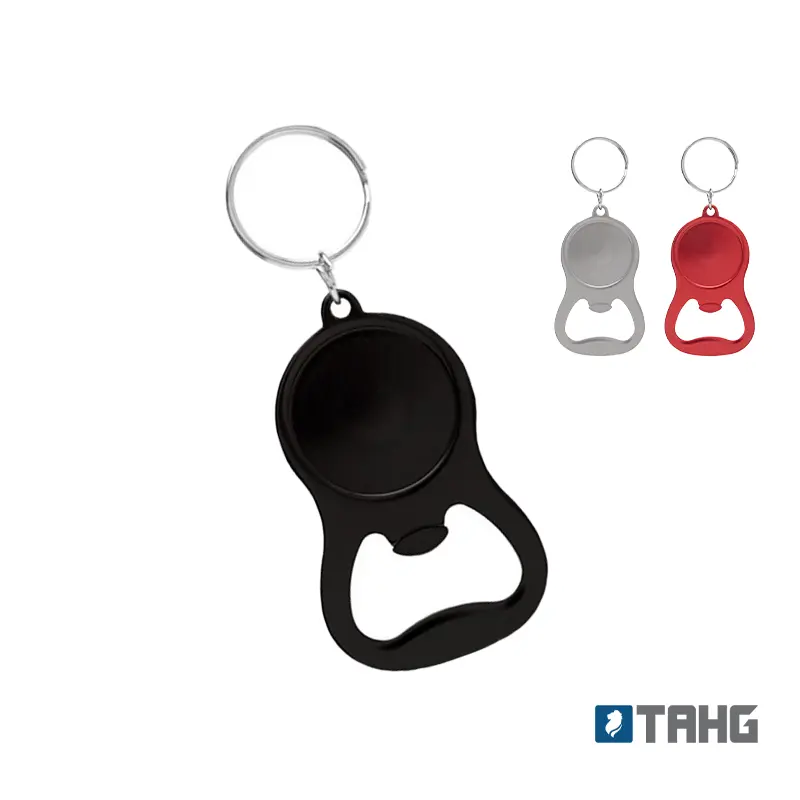 Llavero abridor tapa corona, metálico. Medidas: 4 x 6,5 x 0,3 cm. (anillo de 25 mm de diámetro). LOGO24: Producto disponible para el servicio de logueo en 24 horas respetando unidades mínimas de logueo y 1000 unidades máximas. Consultar términos y condiciones del servicio