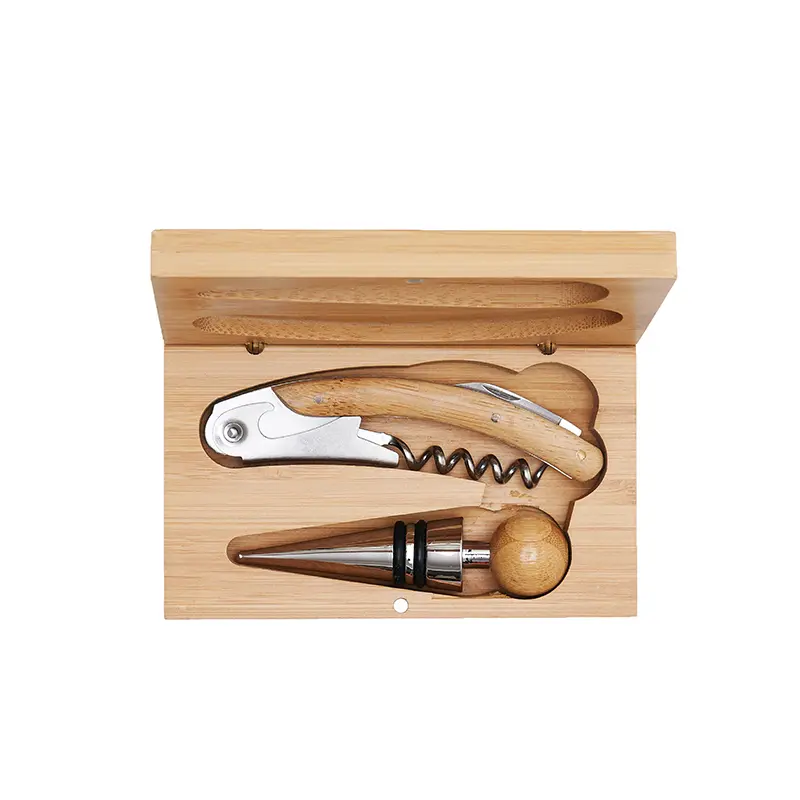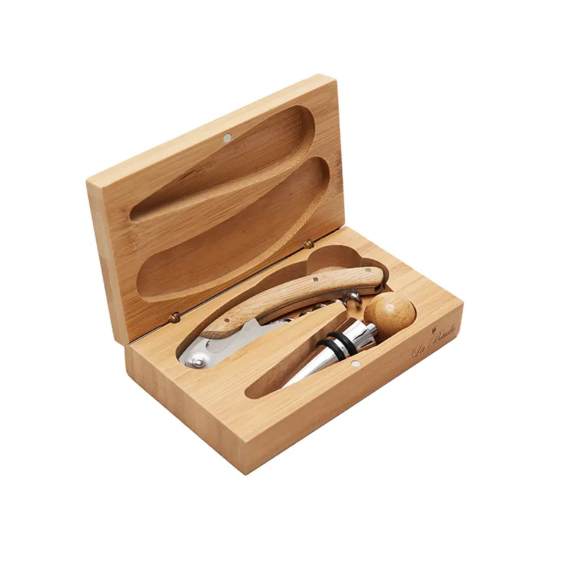 Set de vinos en caja de bamboo de dos elementos. Posee: Sacacorchos dos tiempos y tapón, realizado en acero inoxidable. Medidas de la caja: 13 x 8 x 3,2 cm. La Baule. LOGO24: Producto disponible para el servicio de logueo en 24 horas respetando unidades mínimas de logueo y 200 unidades máximas. Cons…