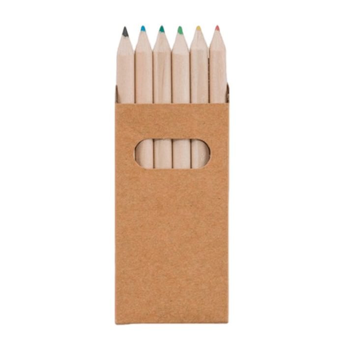 S4 Set de 6 lápices en caja de cartón natural con ventana. Lápices de madera de acabado natural y minas en variada gama de colores. Incluye 6 Piezas. Tamaño Lápices Ø 0,7 cms. x 8,6 cms. Tamaño Estuche 4,4 cms. x 9 cms. Embalaje Master Caja de 200 unidades Opciones de Personalización