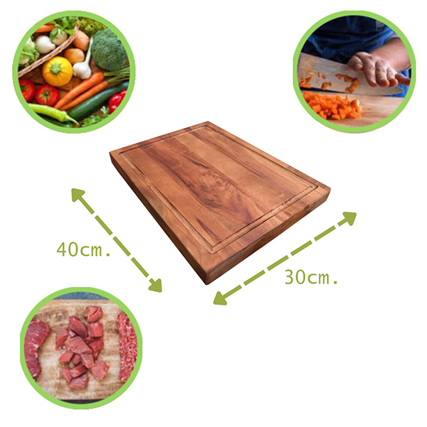 TP11 Tabla rectangular para picar carnes de madera Acacia. Madera trabajada y acaba a máquina, 100% regular con superficies laterales suaves y lisas. Ranuras laterales para excesos de líquidos. Tamaño 40 cms x 30 cms x 2 cms. Presentación Caja De Cartón Duro Kraft. Embalaje 1 Unidad. Embalaje Master…