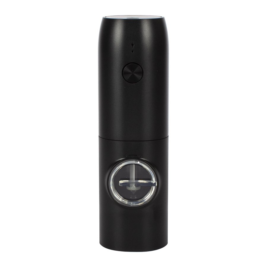 Pimentero Eléctrico con luz blanca y cargador USB/Type-C, materialidad plástico ABS negro + acero inoxidable. Potencia Cargador Type-C: 500mAh. Presentación en caja de regalo con gráfica y fotografía del producto a todo color.
