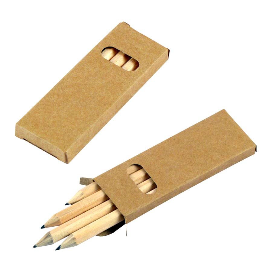 Set de 4 Lápices Grafito Negro hexagonales, en Estuche rectangular de Cartón reciclado con ventana.