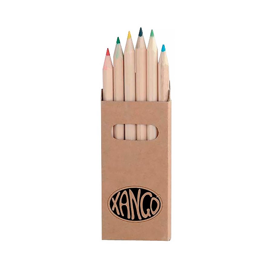 Set de 6 Lápices hexagonales cortos de colores, en Estuche rectangular de cartón reciclado con ventana.