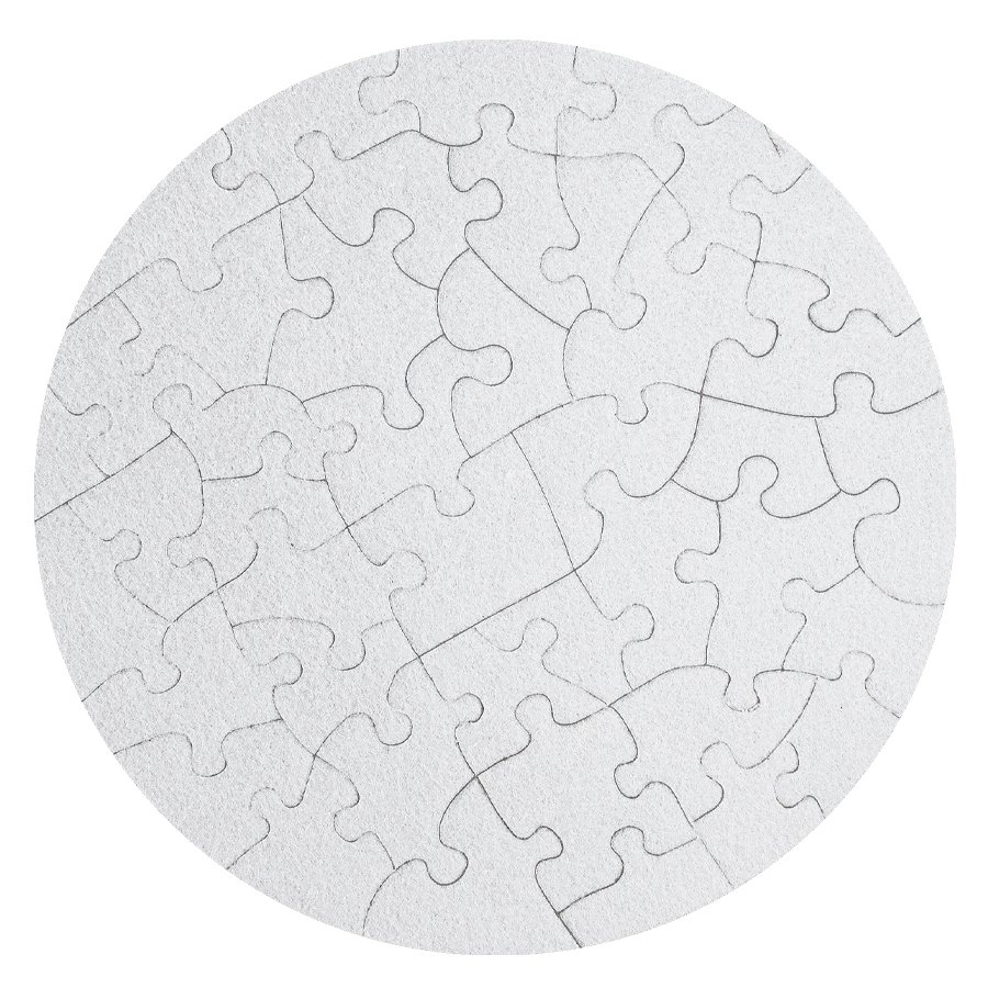 Puzzle Rompecabezas circular de 41 piezas, en cartón sandwich 1.2mm con cobertura aterciopelada para Sublimación. Presentación en bolsa de Polipropileno transparente.