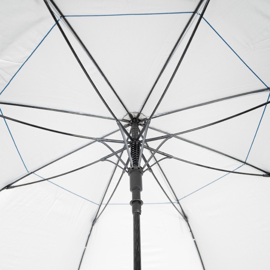 Paraguas gigante de Golf, con 8 cascos de tela 190T PONGEE, reverso UV. Incluye doble casco WINDPROOF (grande y pequeño), que evita el volcamiento ya que permite que el viento pase entre los cascos. Contiene varas reforzadas Anti-Vuelco de Fibra de Vidrio color negro y sistema de apertura automático…