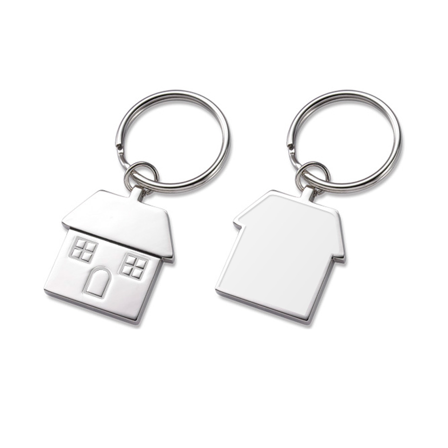 Llavero Metálico Casa, con reverso liso. Presentación en estuche laminado negro con cuna aterciopelada.