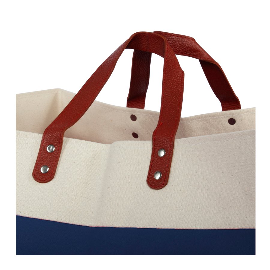 LAUNDRY BAG, resistente bolsa gigante de compras o para ropa, en tela Canvas Algodón laminado natural de 12oz. (355 g/m2). Contiene doble manilla de Cuero natural. Soporta más de 40kg.