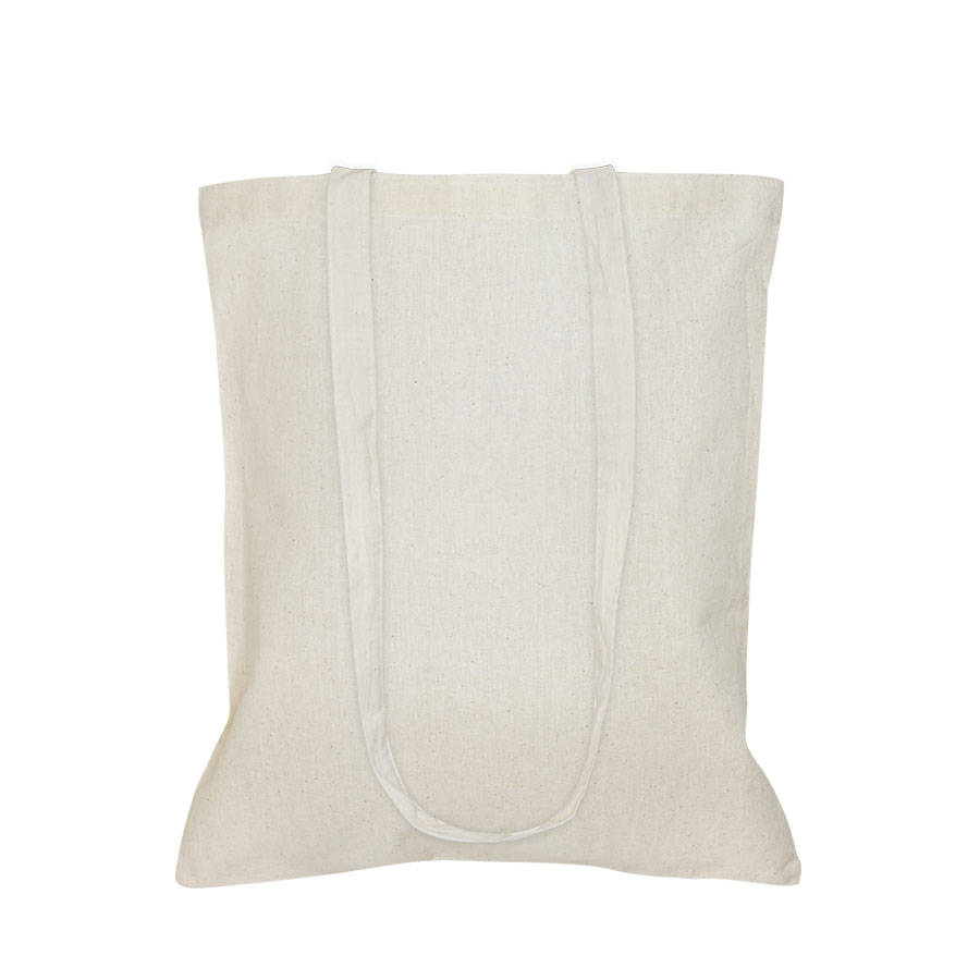 Bolsa 100% Algodón natural de 130g/m2, modelo "India". Manillas de Algodón natural de 80 x 2.5 cm. aprox. c/u.