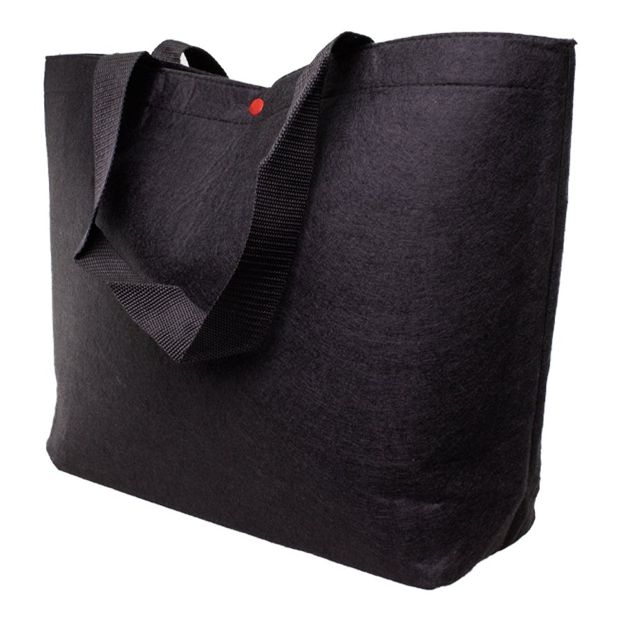 Bolsa de compras de Fieltro modelo "British". Tela Fieltro Poliéster 300g/m2. Capacidad 20 litros, tamaño 51 x 33 x 12 cm. Incluye broche rojo y manillas de poliéster negro.