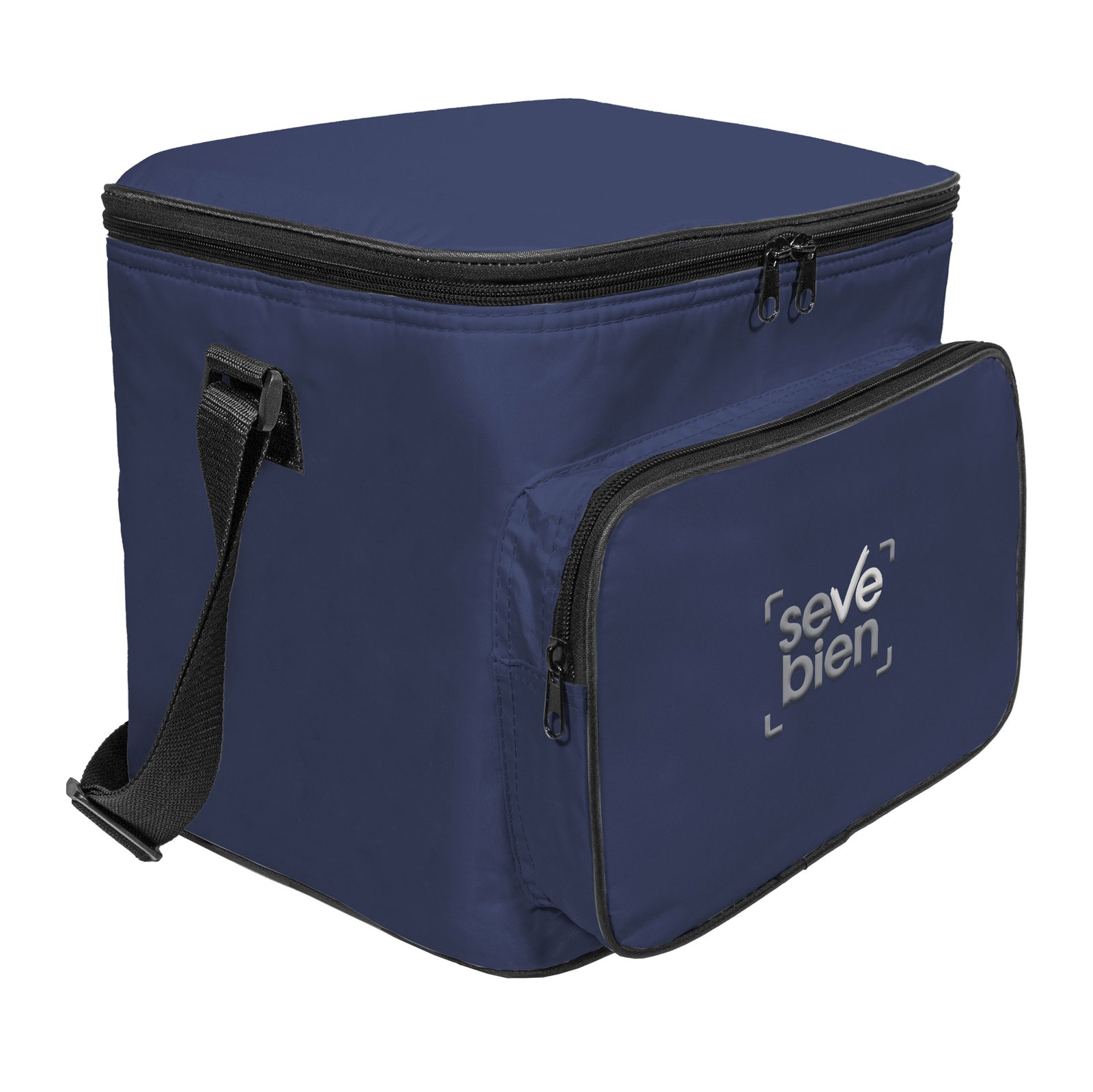 28 x 25 x 25 cm.. Capacidad 17,5 litros. Poliéster 420D. Interior recubierto de aluminio. Exterior con bolsillo y cierre que permite guardar pequeños objetos. Tira con regulador de tamaño para poderla transportar cómodamente.