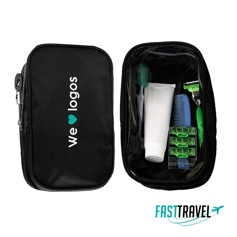 Necessaire con panel frontal traslucido, el cual permite ver los productos en el interior y correa de transparente. Medidas: 22 x 10 x 13cm. Capacidad 4 Litros. Imágenes ilustrativas, no incluye los productos cosméticos. Fast Travel