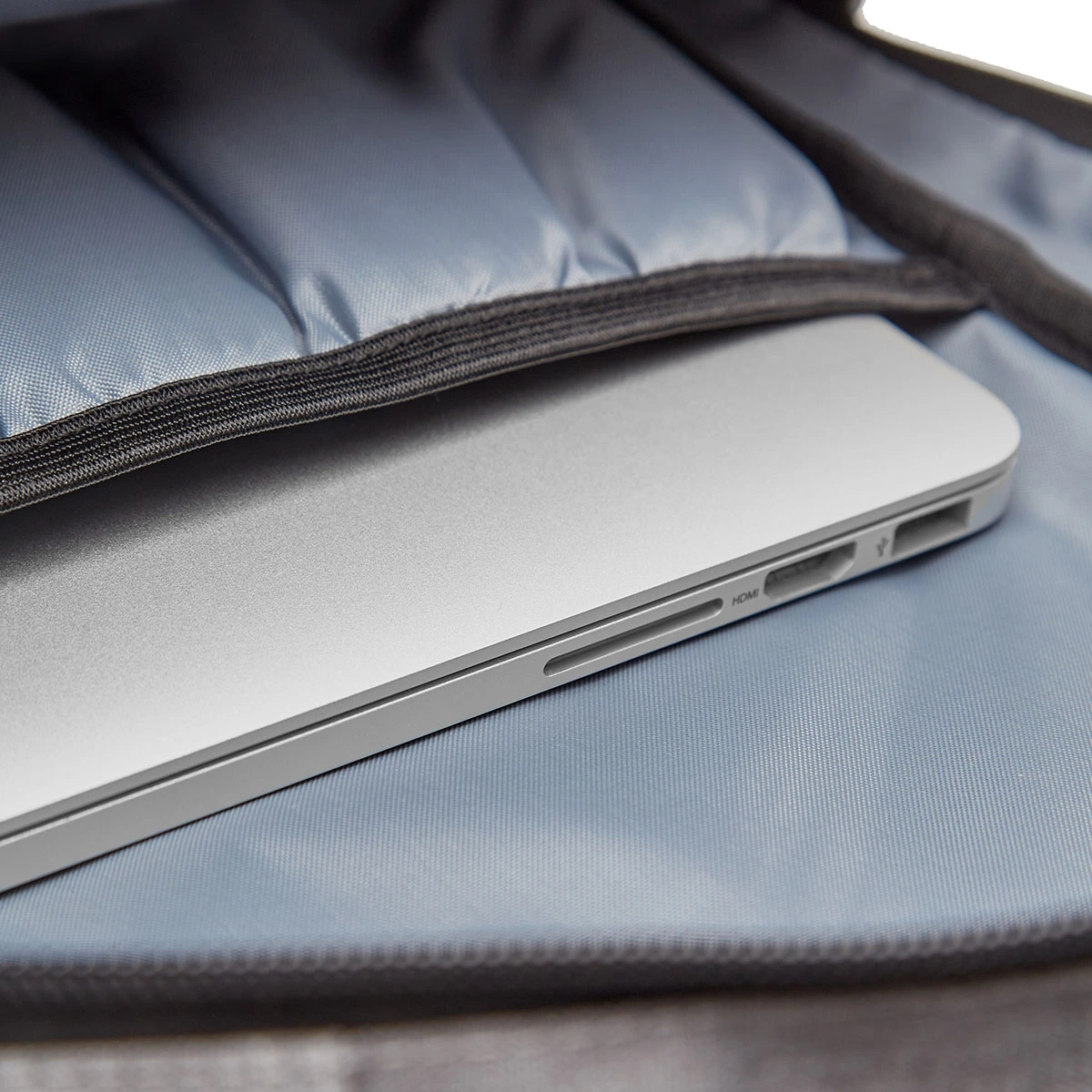 Mochila con compartimiento principal portanotebook. Dos bolsillos frontales con cierre, bolsillos laterales sin cierres ideales para botellitas Espaldar y tiras acolchadas.