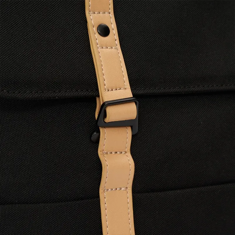 Mochila tipo urbana con solapa y broches metálicos, confeccionada en poliéster reciclado 600D. Cuenta con compartimiento principal bajo la solapa y tiras ajustables. En su interior cuenta con un espacio para PC, un bolsillo para transportar una botella, y otro pequeño con cierre para llevar objetos …