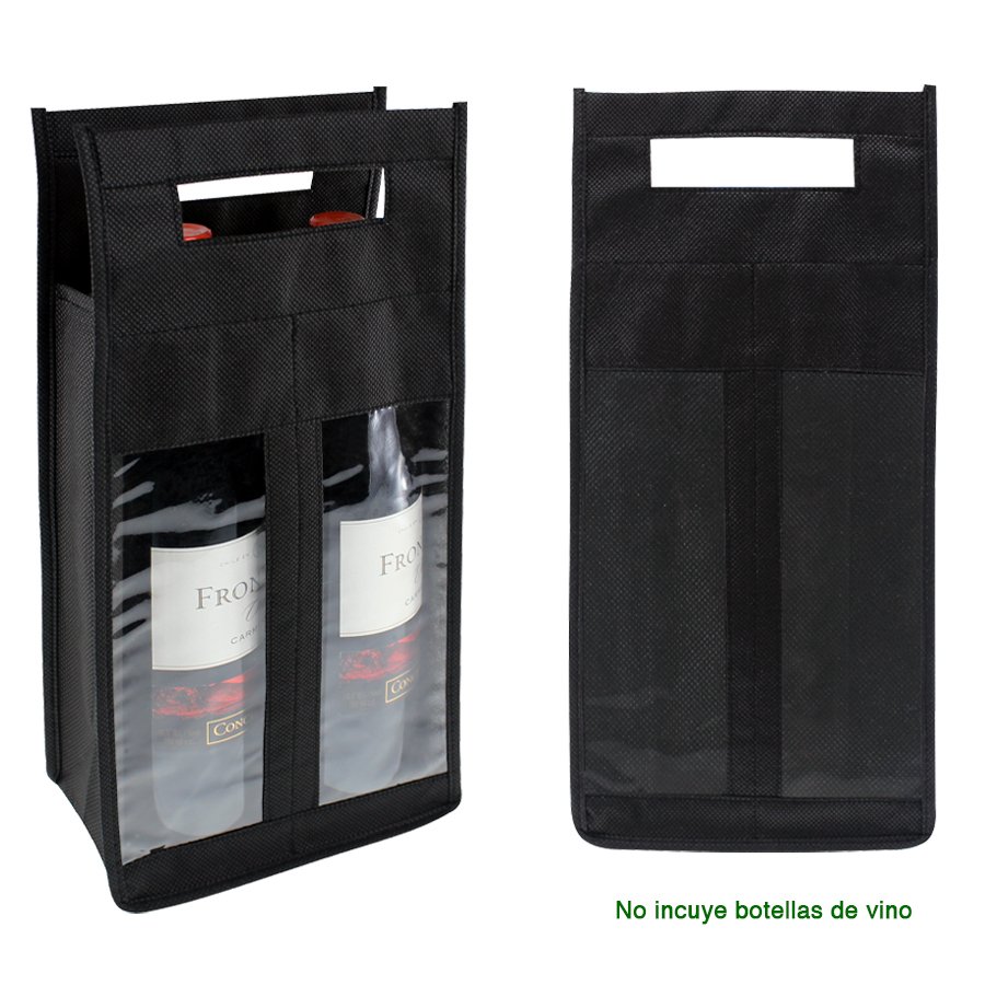 Porta-Botellas de vino, para 2 unidades, en tela no tejida (TNT) de 80g/m2, con ventanas frontales de PVC clear.