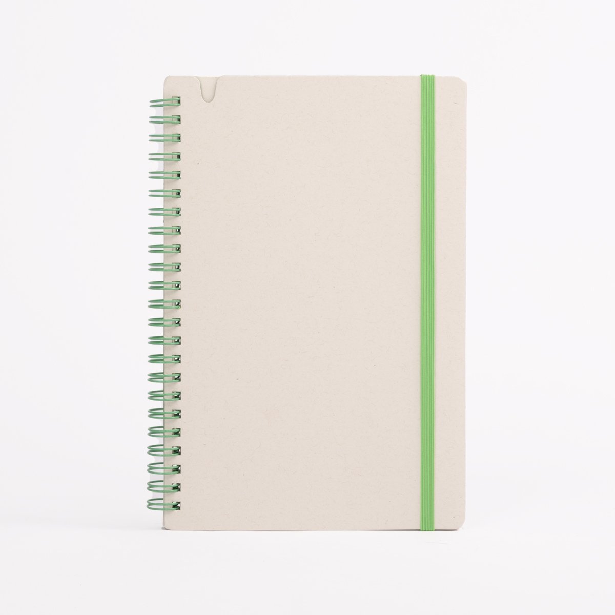OSORNO es un cuaderno A5 de espiral lateral que convierte el reciclaje en funcionalidad. Con cubierta y páginas elaboradas a partir de cartón de envases lácteos recuperados, este cuaderno ofrece una alternativa consciente para el día a día. Sus 70 hojas de papel blanco con leve tono gris conservan la identidad del material reciclado, mientras la espiral y banda elástica en color verde refuerzan visualmente su espíritu ecológico. OSORNO es práctico, personalizable y perfecto para marcas que desean promover hábitos responsables a través de artículos útiles y con historia.
