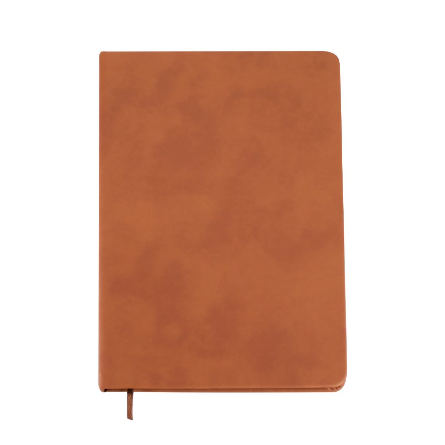 Cuaderno tamaño A5, con cubierta de cartón piedra forrada en PU simil cuero de 3mm de espesor. Interior 80 hojas lineadas amarillas de 80gsm. Incluye banda separador de hojas al tono. Presentación individual en bolsa de polipropileno.