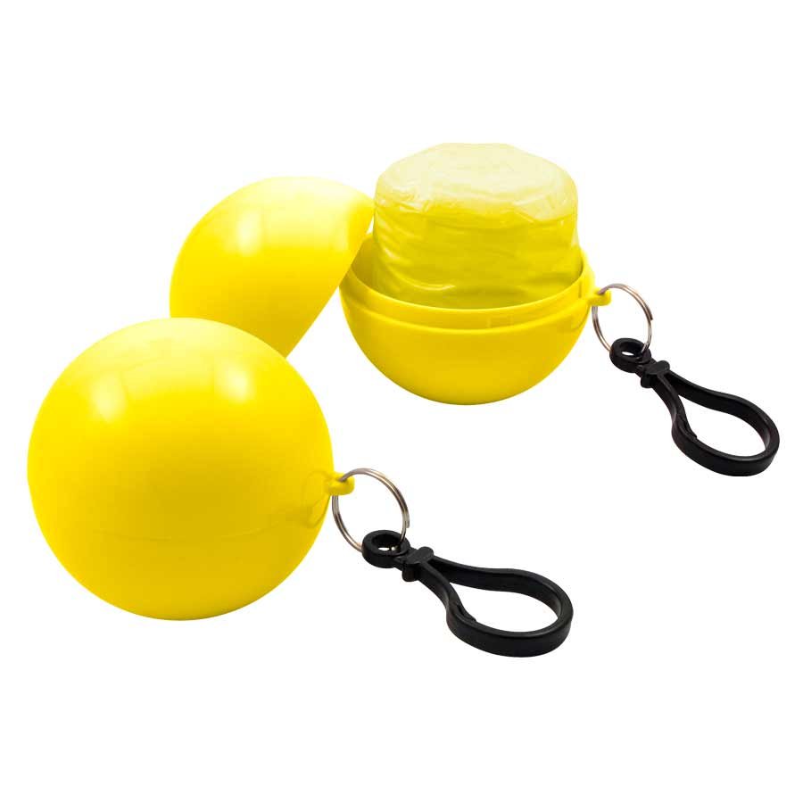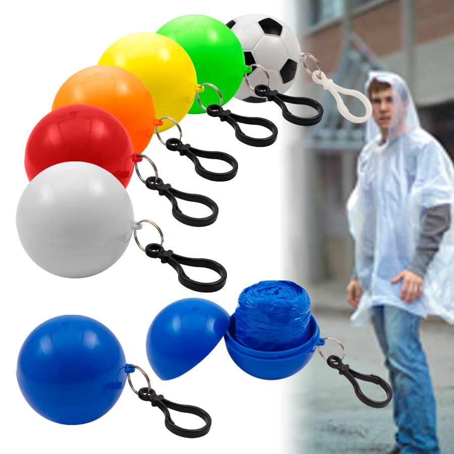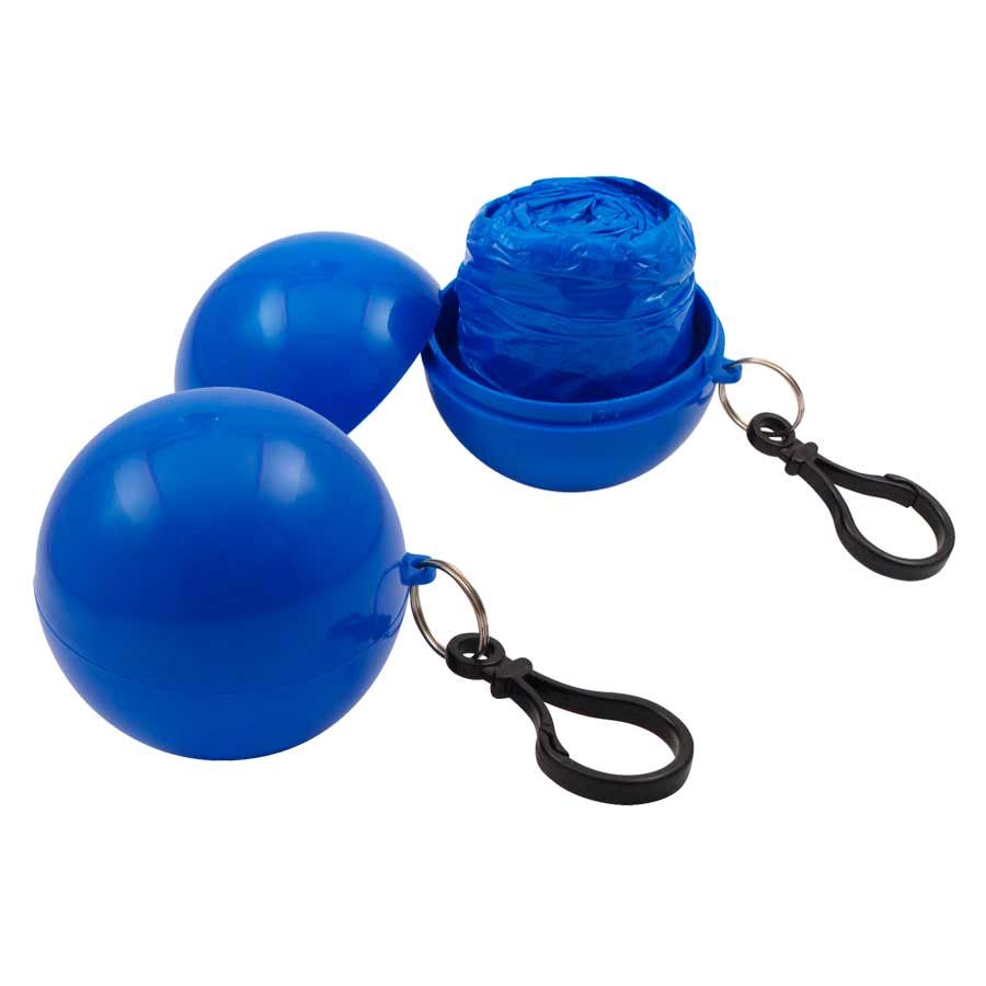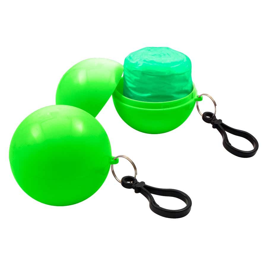 Capa de Agua (Poncho) comprimido en pelota plástica desmontable. Incluye un práctico mosquetón para colgar. Ideal para llevar adonde quieras y estar 100% preparado por si te pilla una lluvia repentina!!!