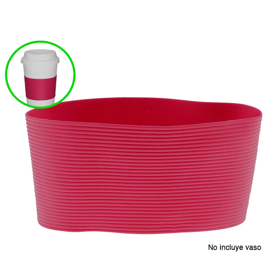 Grip (mango) de silicona texturada de color. Se usa como complemento del vaso plástico blanco M14. Ambos productos se venden por separado.