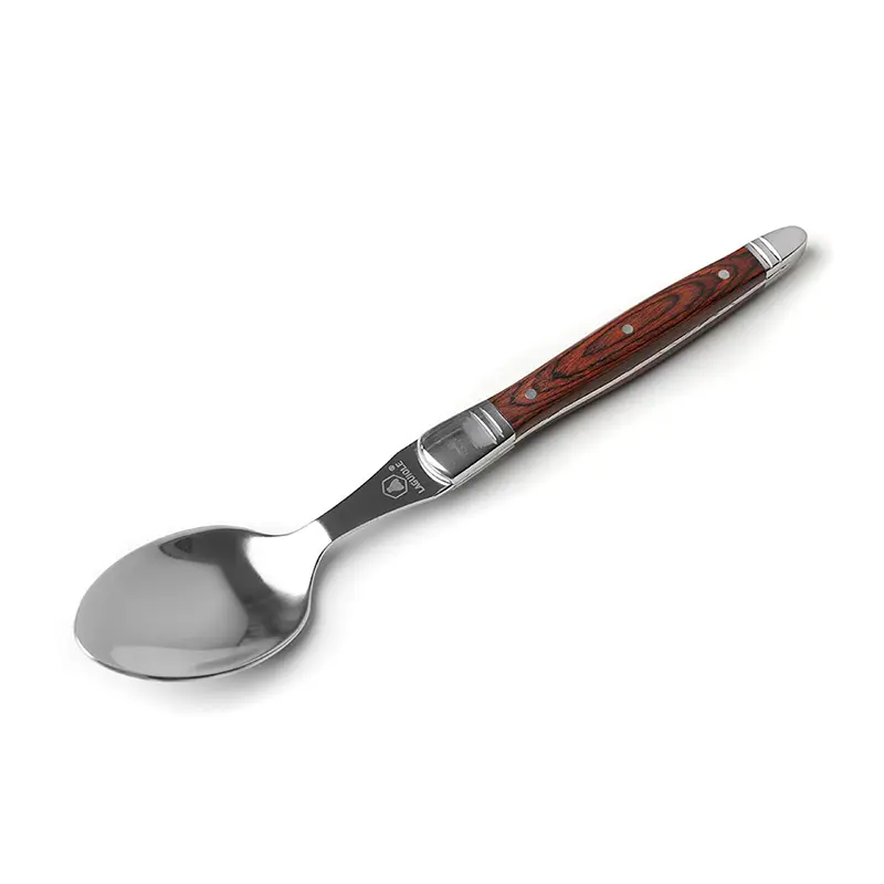 Set de cubiertos para 4 personas de diseño francés. Piezas con hojas de acero forjado 420 y mango de madera noble con detalles metálicos. La Caja de madera negra contiene: 4 tenedores, 4 cuchillos, 4 cucharas soperas, 4 cucharas de té. Medidas de la caja: 25,8 x 35 x 7 cm. Producto libre de BPA. Laguiole.