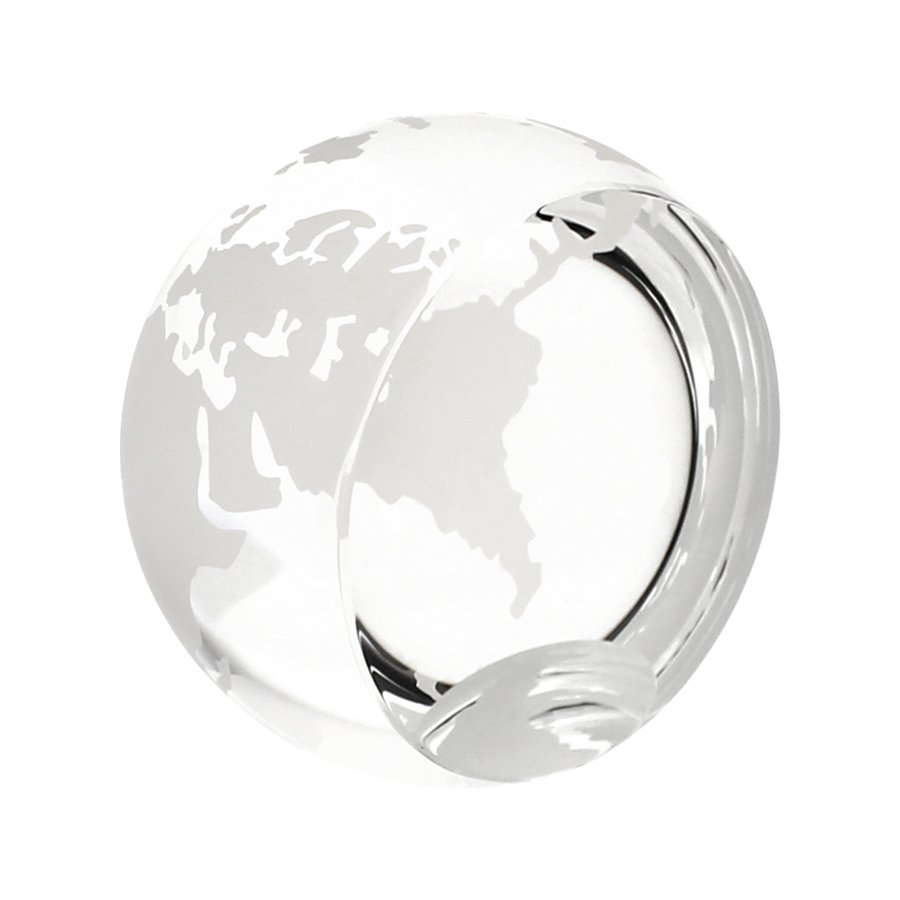 Trofeo de Cristal modelo "Planet" en forma de planeta con lado truncado. Presentación en caja de cartón forrado negro.