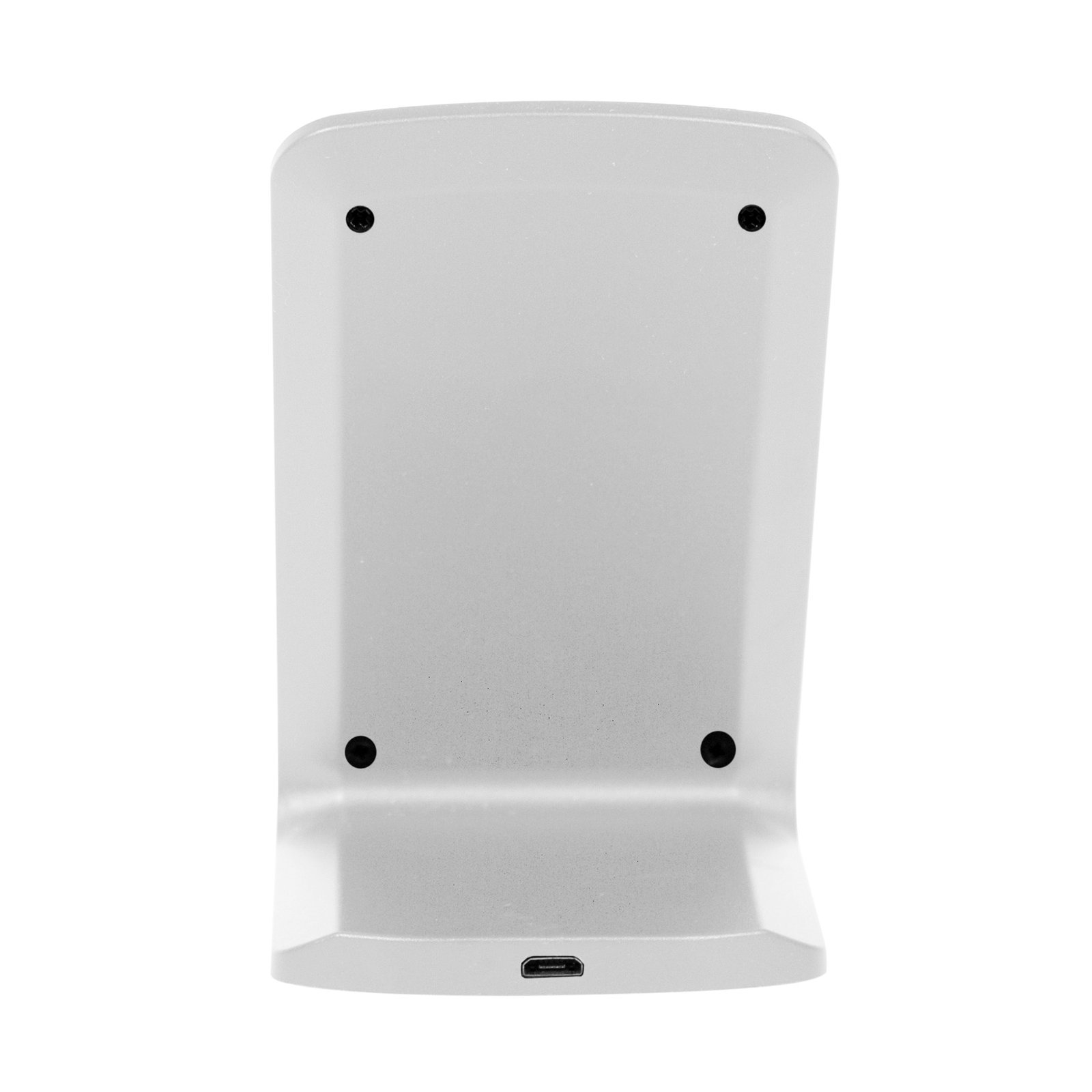 7 x 7,5 x 10,5 cm. Plástico ABS. Cargador USB de carga rápida inalámbrica para telefono móvil. Apoyando el celular comienza a cargar la bateria. Puede cargarse tanto en posicion horizontal como vertical gracias a la doble bateria de 10w c/u. Incluye cable de conexión USB de 60cm de largo. Presentación en caja de regalo.Compatible exclusivamente con celulares que permitan carga inalámbrica (tecnología qi).Voltaje de Entrada : 9V/2A