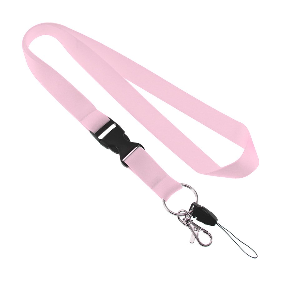 Lanyard Porta-Credencial y Accesorios de Polyester liso de 2 cm. de ancho para sublimación. Incluye tip-top plástico negro, mosquetón metálico y cordón negro porta-celular y accesorios.